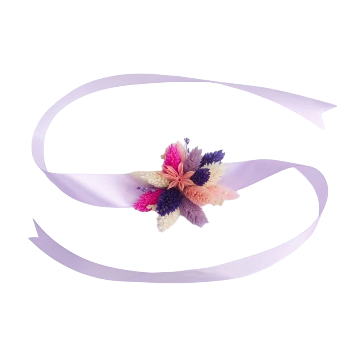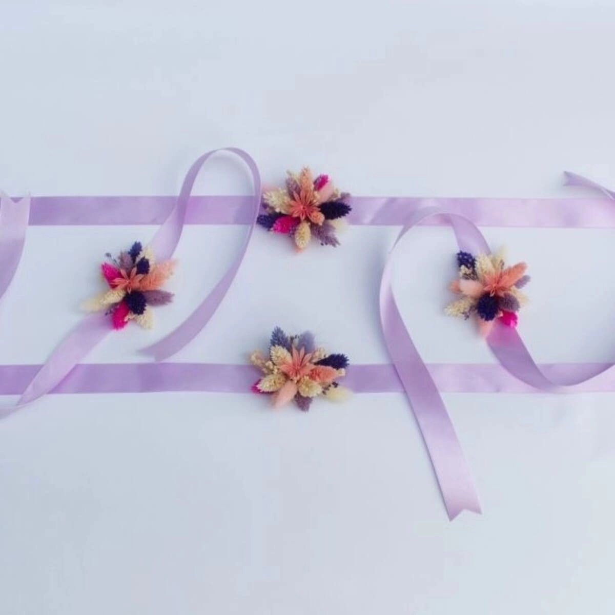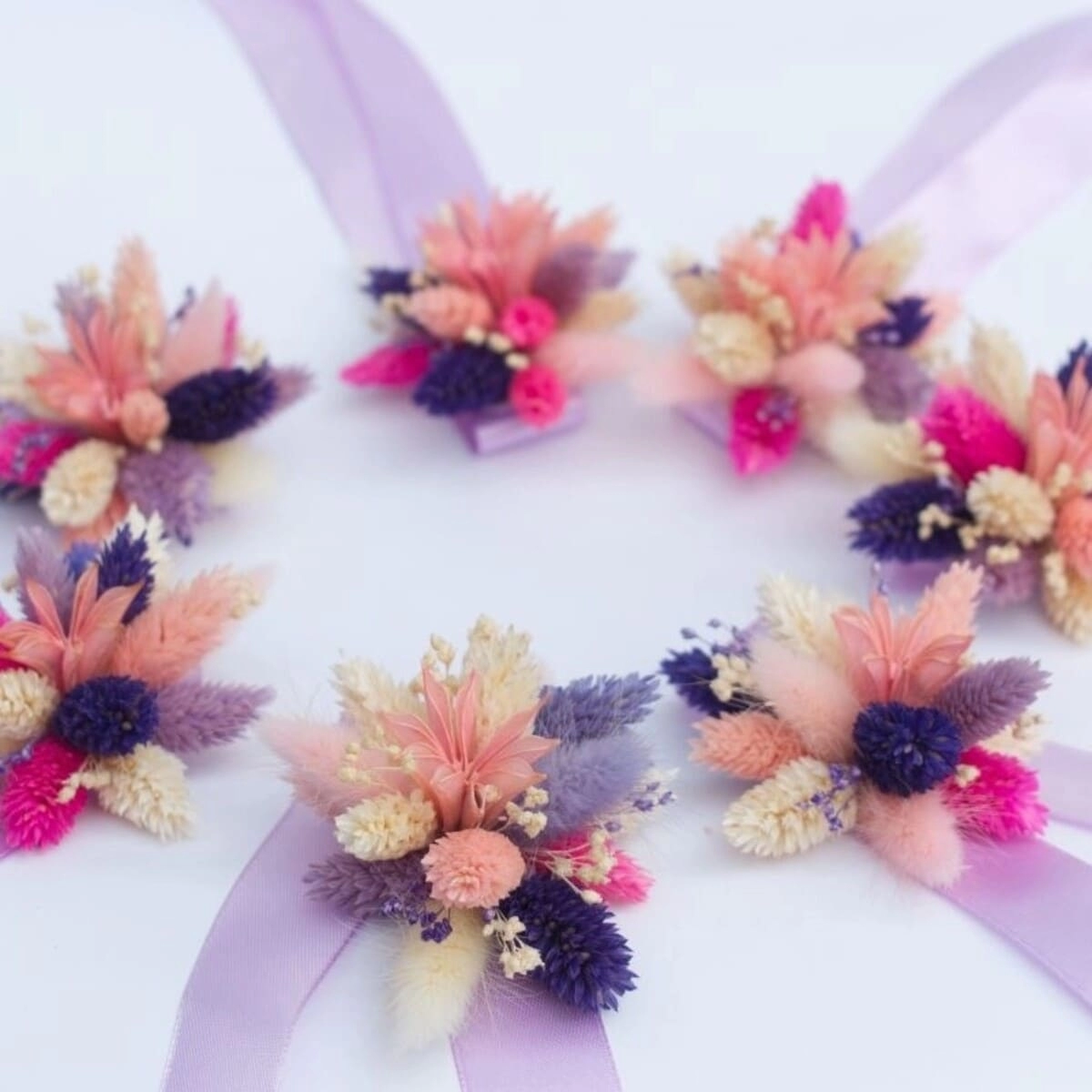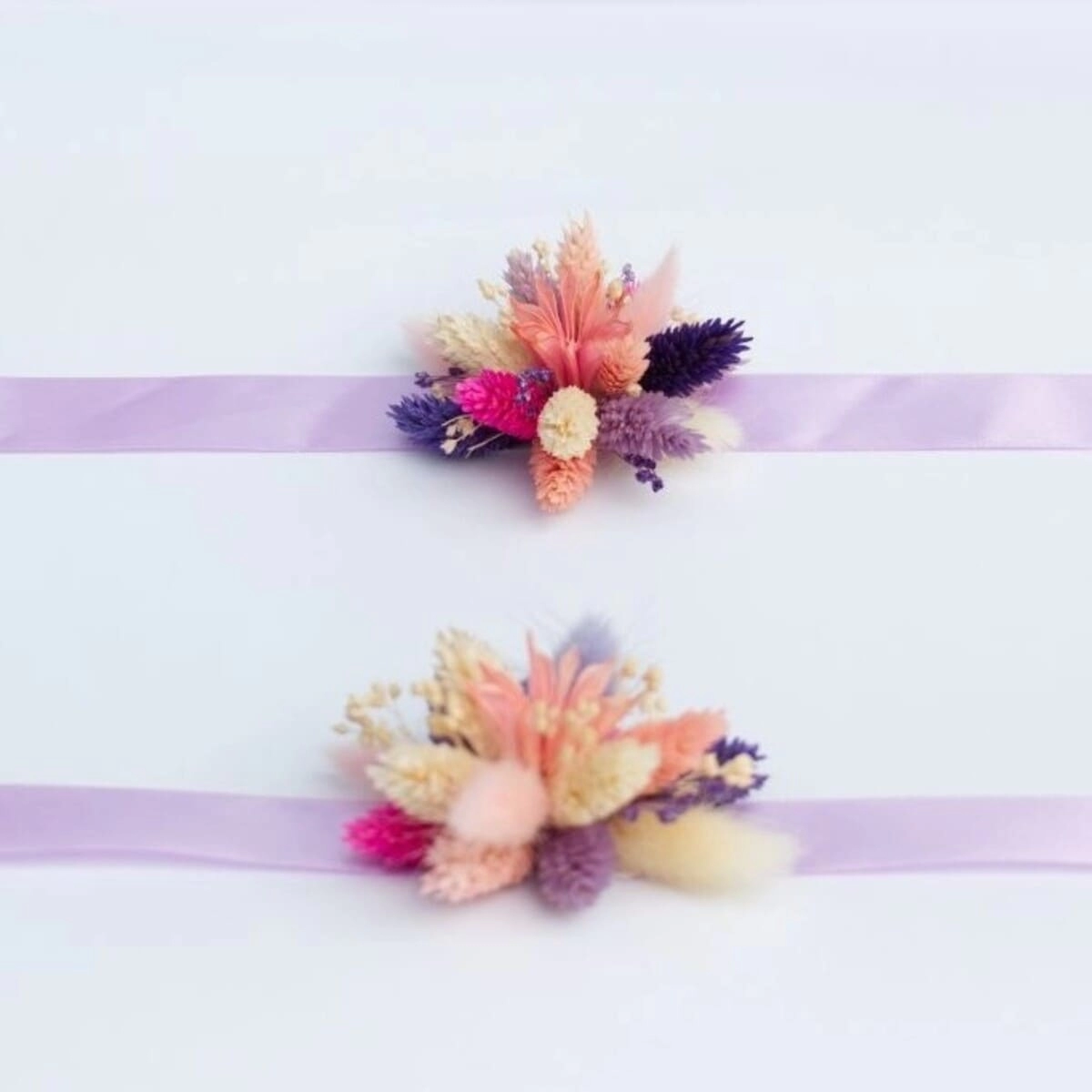 Corsaj (bratara) domnisoara de onoare, cu flori uscate roz-mov