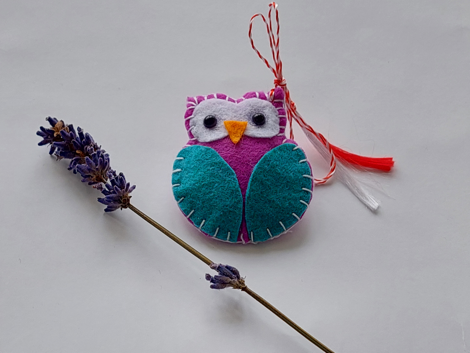 Un mărțișor vesel și parfumat, perfect pentru a aduce un strop de noroc și primăvară în sufletele celor dragi! Această broșă handmade este realizată din fetru, sub forma unei bufnițe, și umplută cu lavandă uscată, oferind un parfum delicat și relaxant.
