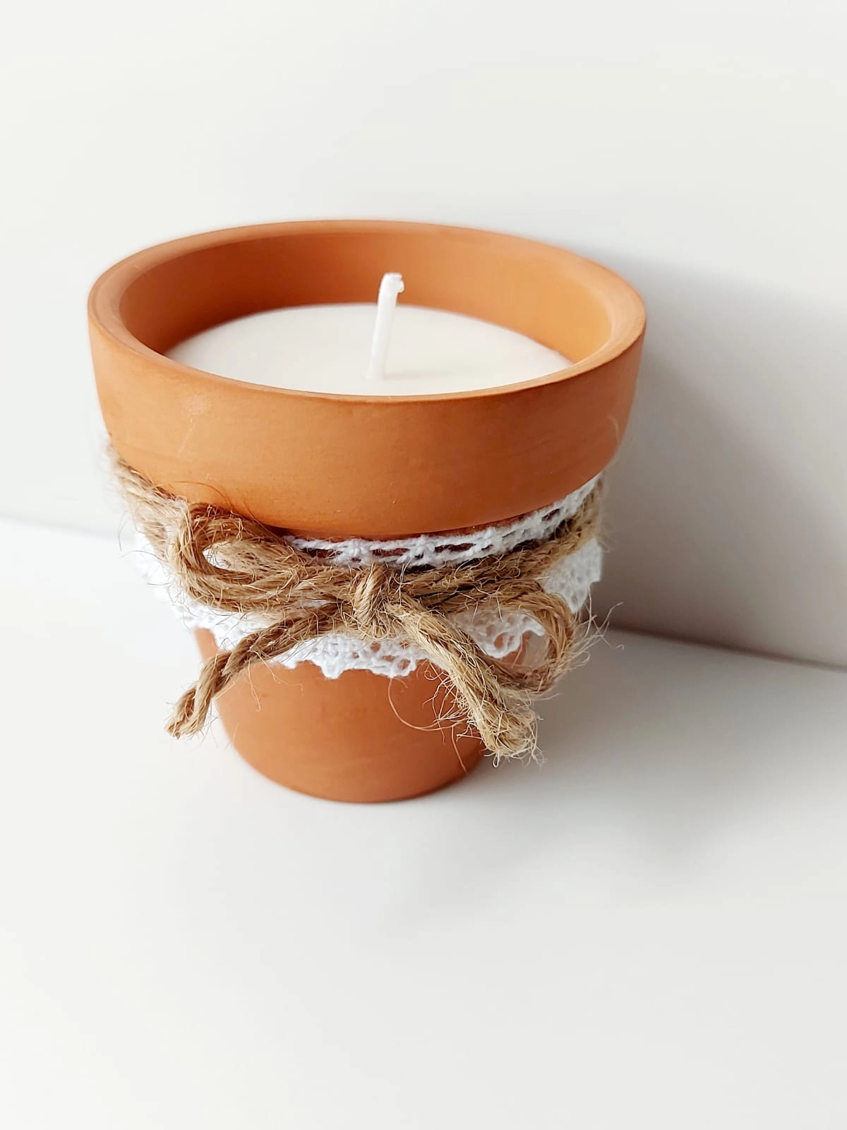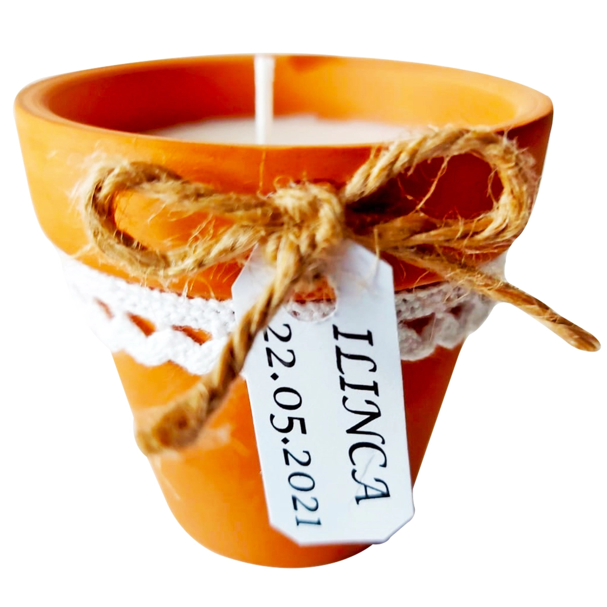 Marturie lumanare in ghiveci ceramic, dimensiune ghiveci 4.1 x4.8 cm, ceara de palmier cu parfum de lavanda( antitabac, scortisoara, spices)